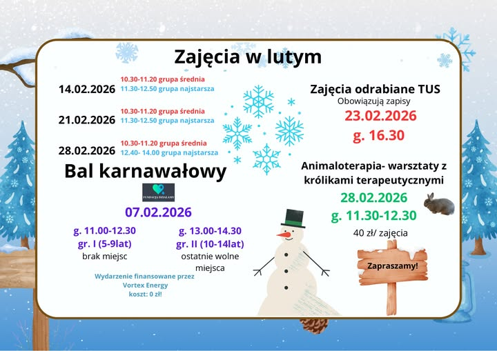 Zapisy można dokonać pod nr telefonu: 724 646 161 oraz przez Messenger. Potwierdzeniem zapisów na zajęcia jest przelew na numer bankowy 47 1140 2004 0000 3102 8144 7102, w tytule przelewu wpisujemy imię, nazwisko i wiek dziecka oraz rodzaj zajęć.