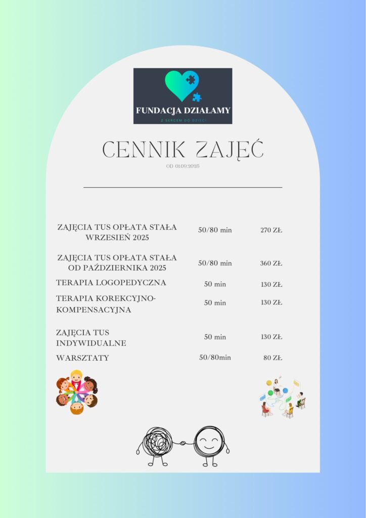 Nowy cennik zajęć w Fundacji Działamy od 1 września 2025! 💚